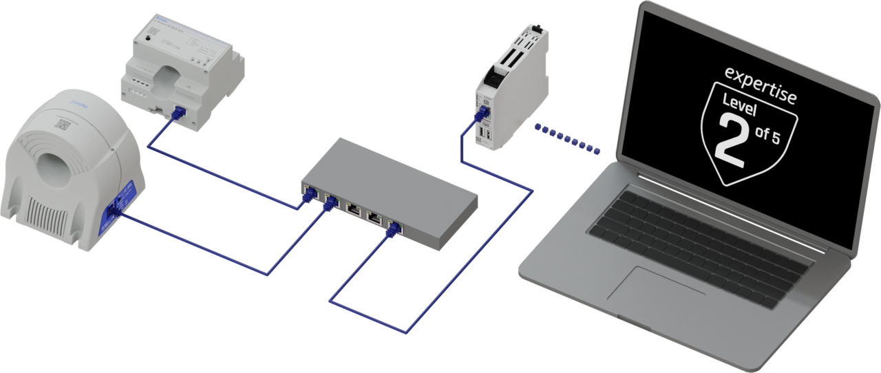 e.Guard expertise kombiniert smarte RCMs mit dem e.Guard-Gateway zum Datenmanagement und zur Software-Nutzung. Dadurch ist in Level TWO kein PC mehr für die Datenspeicherung notwendig.