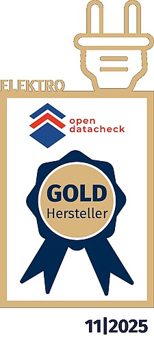 Ein großer Erfolg für unsere digitale Produktkommunikation: Die Qualität unserer Produktdaten erreicht bei Open Datacheck Elektro einen Score-Wert von 100 Punkten. Damit sind wir ab sofort als Gold-Hersteller zertifiziert.