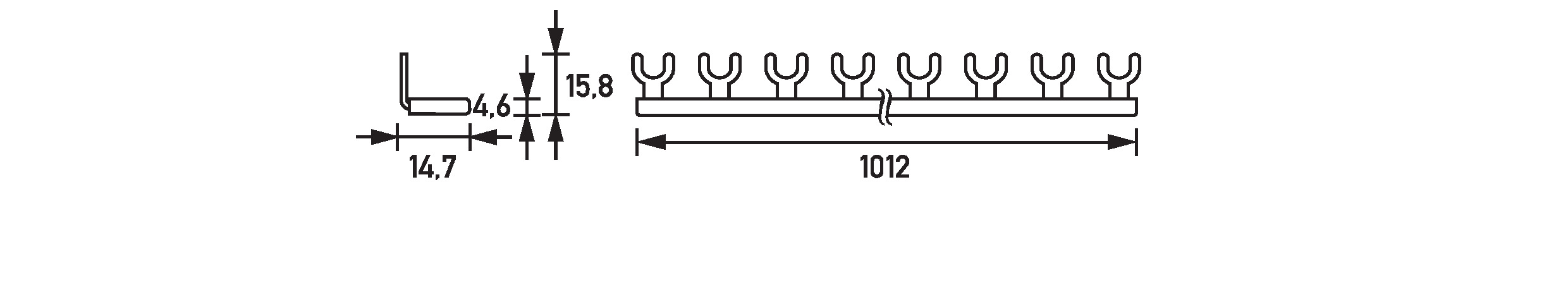 einsetzbar zur Verbindung von Fehlerstromschutzschaltern, Leitungsschutzschaltern und FI/LS-Kombinationen, große Variantenvielfalt , hohe Zeitersparnis bei der Verdrahtung, Gesamtlänge ca. 1000 mm, ablängbar, Isolierung der offenen Enden durch optionale Endkappen "EK" empfohlen