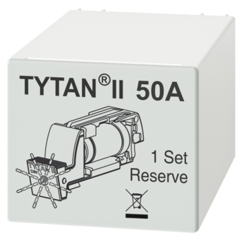 Fuse plug sets contain spare parts for fuse-switch-disconnectors. The fuse plug sets of this series are suitable for Tytan II fuse-switch-disconnectors. Your box can be easily installed on the mounting rail and thus be used as a reserve box. Electronic fuse plug sets include fuses with an LED display.