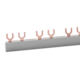 The cut to length busbars are suitable for the supply-side connection of residual current circuit-breakers, miniature circuit-breakers (MCBs) and residual current operated circuit-breakers with integral overcurrent protection (RCBOs) on the bottom of the devices. The bars with furcated cable lug are available in a wide range of variants in one to four-pole design (some also with space for auxiliary switches) and provide time-saving and user-friendly processing options. Unused connections can be covered by the EV-S BS protective cover.