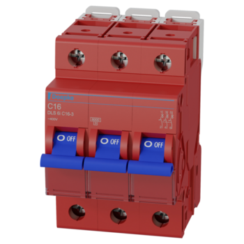 Miniature circuit-breakers protect cables, conductors, and installation devices against overload and short circuit. Each of our circuit-breakers is equipped with a trip-free mechanism that ensures safe disconnection – even if the toggle is mechanically blocked. Our DLS 6i MCBs are equipped with locking sliders on both sides. This allows for easy removal of the circuit-breakers from the busbar system. Their rated breaking capacity is 6 kA. With tripping characteristic C, these circuit-breakers ensure reliable protection for your circuits with loads that generate higher inrush peaks. The red housing makes these circuit-breakers visually stand out, thereby fulfilling the marking requirements in accordance with DIN VDE 0100-560 (installations for safety purposes).