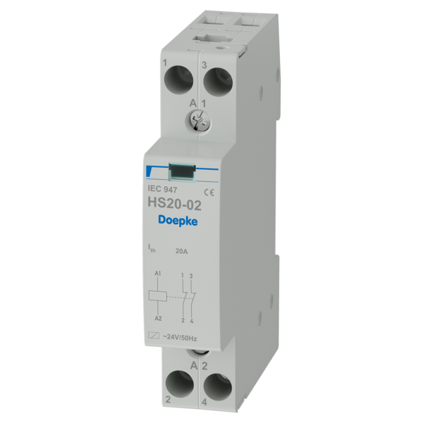 The names of devices in this family contain both the rated current (first pair of digits) and the contact variant (last pair of digits): For example, a HS 25-31 has a rated current of 25 A, three NOCs and one NCC, At ambient temperatures of 40°C and higher, using the DHDS spacer is recommended, The HS 1 contact is 1 module width wide, and thus the HS 2 and HS 3 are 2 and 3 module widths wide.