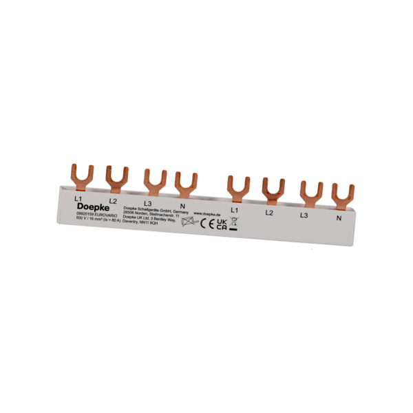 Barra ómnibus para DRCBO 4 tipo B/B+, Horquilla, 4-polos, 16 mm², 8,5 Módulo, 80 A