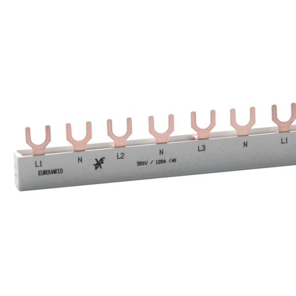 Barra ómnibus, Horquilla, 4-polos, 18 Módulo, 63 A ((L1+N, L2+N, L3+N) x 3)