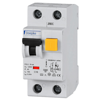 Interruptores diferenciales/interruptores magnetotérmicos, 1 polo + N, 16 A, 0,03 A, Característica C, Tipo A, 110 V