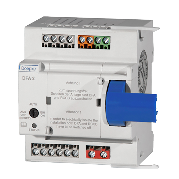 Mit einem Fernantrieb (ARD) werden angeschlossene Fehlerstromschutzschalter aus der Ferne ein- und ausgeschaltet. Die Anlagenverfügbarkeit wird so deutlich erhöht. ARD mit Automatikfunktion schalten den Schutzschalter automatisch wieder ein. Bei einem erkannten Anlagenfehler erfolgt keine Wiedereinschaltung. Die Geräte dieser Baureihe schalten die Doepke-Fehlerstromschutzschalter DFS 2 und DFS 4. Je nach Ausführung machen die DFA drei, einen oder keinen Wiedereinschaltversuch. Sie werden linksseitig an den RCCB angesetzt. Fernantriebe dieser Ausführung schalten den Fehlerstromschutzschalter ein Mal wieder ein. Die Wiedereinschaltung erfolgt 15 Sekunden nach Auslösung. Der Automatikmodus kann ausgeschaltet werden, z. B. zum Schutz bei Wartungsarbeiten in der Verteilung. Die Spannungsversorgung erfolgt wahlweise mit 24 V AC oder DC. Zudem ist eine Fernauslösung durch eine Fehlerstromsimulation möglich. Die aktuelle Schaltposition des Schutzschalters ("eingeschaltet", "ausgelöst" bzw. "ausgeschaltet") wird durch drei integrierte Relaisschaltkontakte signalisiert.