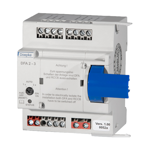 Mit einem Fernantrieb (ARD) werden angeschlossene Fehlerstromschutzschalter aus der Ferne ein- und ausgeschaltet. Die Anlagenverfügbarkeit wird so deutlich erhöht. ARD mit Automatikfunktion schalten den Schutzschalter automatisch wieder ein. Bei einem erkannten Anlagenfehler erfolgt keine Wiedereinschaltung. Die Geräte dieser Baureihe schalten die Doepke-Fehlerstromschutzschalter DFS 2 und DFS 4. Je nach Ausführung machen die DFA drei, einen oder keinen Wiedereinschaltversuch. Sie werden linksseitig an den RCCB angesetzt. Fernantriebe dieser Ausführung schalten den Fehlerstromschutzschalter wahlweise ein- oder dreimal wieder ein. Die Wiedereinschaltung erfolgt 15 Sekunden nach Auslösung. Der Automatikmodus kann ausgeschaltet werden, z. B. zum Schutz bei Wartungsarbeiten in der Verteilung. Die Spannungsversorgung erfolgt mit 230 V AC. Zudem ist eine Fernauslösung durch eine Fehlerstromsimulation möglich. Die aktuelle Schaltposition des Schutzschalters ("eingeschaltet", "ausgelöst" bzw. "ausgeschaltet") wird durch drei integrierte Relaisschaltkontakte signalisiert. Der „Blockiert“-Zustand wird zusätzlich durch ein Relais signalisiert.
